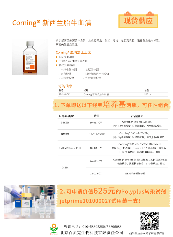 CORNING血清現(xiàn)貨供應(yīng),下單可享雙重優(yōu)惠啦!
