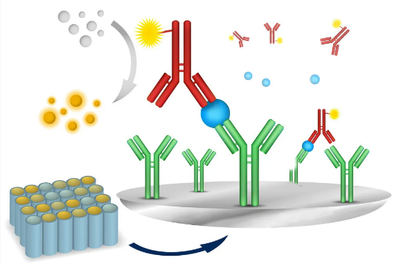 多因子檢測是一種基于96孔板夾心法酶聯(lián)免疫檢測技術。涉及到特異性針對各標志物的包被抗體和檢測抗體。把樣本和校準品加入到包被了抗體的96孔板點陣中,這樣就能在96孔板中固定住它們的位置。洗去未結合的蛋白,加入特異性生物素標記的多因子抗體混合物。
