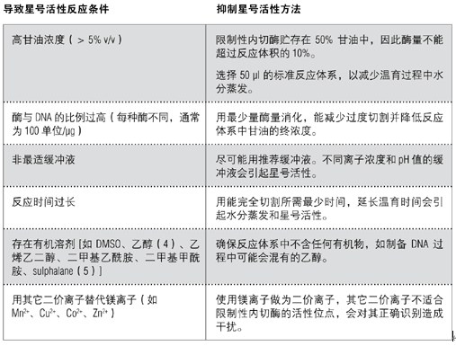1. 延時酶切、高酶濃度或者甘油濃度超過 5% 會導致星號活性。