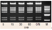1 μl SalI 5 分鐘內(nèi)消化 1 μg DNA,結(jié)果顯示長時間酶切或過夜 (O/N) 消化沒有核酸酶污染。
