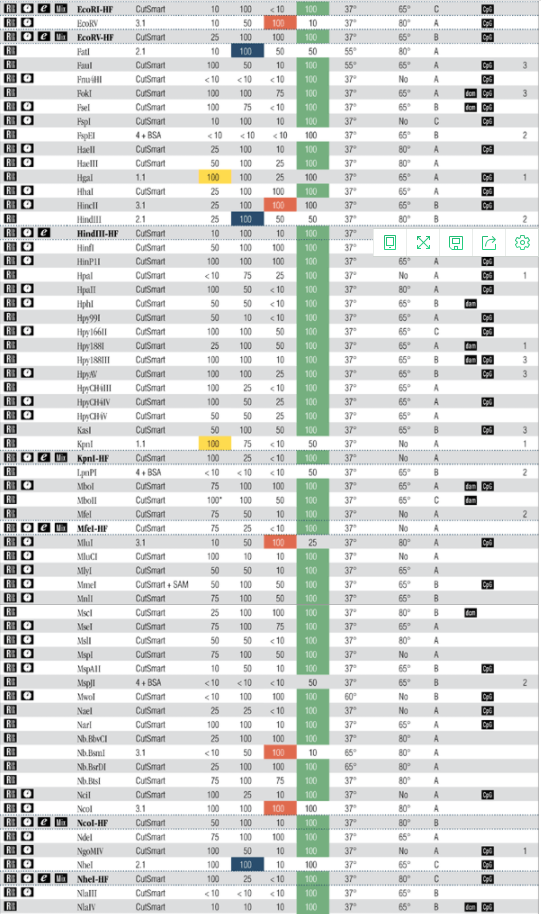NEB 目前提供超過 200 種 CutSmart 內(nèi)切酶,這些內(nèi)切酶在 CutSmart 緩沖液中活性為 100%。這大大提高了內(nèi)切酶的效率、靈活性和簡便性,尤其是進行雙酶切時。