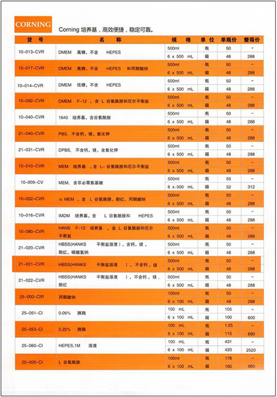 Corning Cellgra培養(yǎng)基2016年促銷