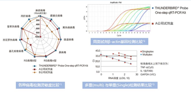 本試劑盒是使用了高效率逆轉(zhuǎn)錄酶ReverTra Ace和PCR酶Tth DNA Polymerase的兩酶體系一步法熒光定量PCR試劑盒。通過將兩種酶與最優(yōu)化的buffer相組合,可以對(duì)微量RNA進(jìn)行迅速定量。適用于對(duì)RNA病毒及低表達(dá)量mRNA的定量。同時(shí),不易受目的基因序列的影響,可高靈敏度地檢測(cè)出各種RNA。