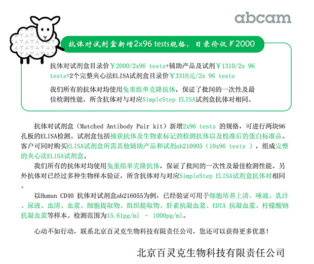 abcam抗體對(duì)試劑盒新增2x96 tests規(guī)格,目錄價(jià)僅¥2000